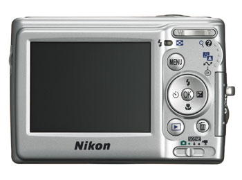 Objektiv: Nikkor-Objektiv mit 3-fach-Zoom; Brennweite: 6,2 bis 18,6 mm (entspricht bei Kleinbild: 37,5 bis 112,5 mm); Lichtstärke: 1:2,8 bis 1:5,2; optischer Aufbau: 6 Linsen in 5 Gruppen; Digitalzoom: bis zu 4-fache Vergrößerung (entspricht bei Kleinbild: ca. 450 mm)
