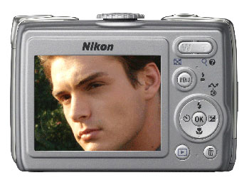Kamerainterne COOLPIX-Technologien: Porträt-Autofokus, D-Lightingund Erweiterte Rote-Augen-Korrektur Der Porträt-Autofokus erkenntGesichter unabhängig von deren Postion im Bildfeld und stelltautomatisch auf sie scharf (Funktion der Gesichtserkennung kann unterbestimmten Bedingungen eingeschränkt sein). D-Lighting rettet zu dunkelgeratene Aufnahmen, indem Helligkeit und Detailzeichnung inunterbelichteten Bildpartien optimiert werden, während korrektbelichtete Bereich unverändert erhalten bleiben. Die ErweiterteRote-Augen-Korrektur erkennt und korrigiert automatisch den lästigenRote-Augen-Effekt, der bei Portätaufnahmen mit Blitz auftreten kann.