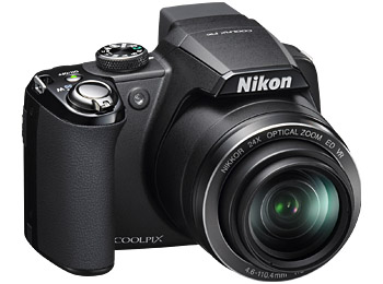 - Objektiv: NIKKOR-Weitwinkelobjektiv mit 24-fach-Zoom; 4,6 bis 110,4 mm (entspricht 26 bis 624 mm beim Kleinbildformat); Lichtstärke 1:2,8 bis 1:5,0; Digitalzoom: bis zu 4-fache Vergrößerung (entspricht 2496 mm beim Kleinbildformat)